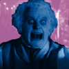 Description: Hobbit, blue-tinted, angry-looking, jumping around on a pink background