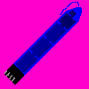 Description: Vibrator, battery-operated, blue, animated. Pale pink background.